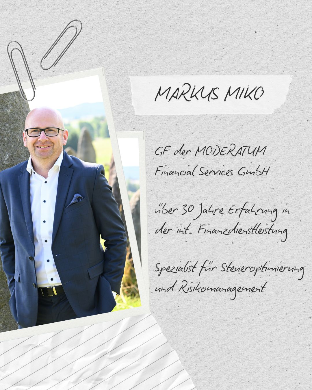 Markus Miko, Geschäftsführer der MODERATUM Financial Services GmbH