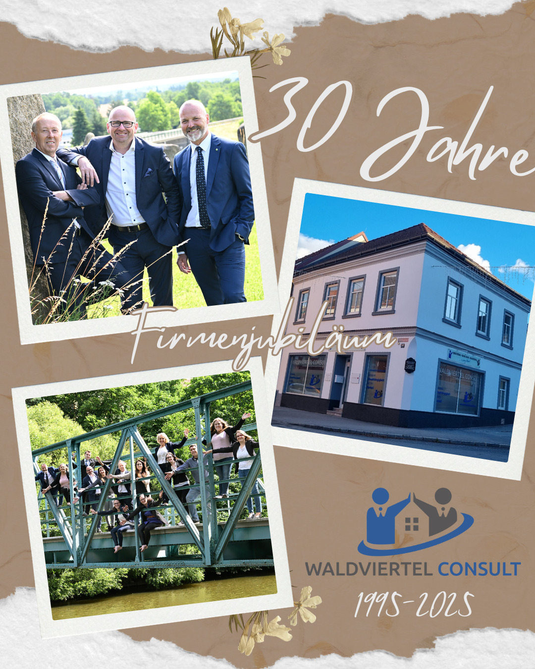 Heute vor 30 Jahren wurde das erste Büro der Firma WALDVIERTEL CONSULT eröffnet. Seit 1995 begleiten wir unsere Kundinnen und Kunden in Sachen Versicherung, Veranlagung und Finanzierung – regional, persönlich, lösungsorientiert. Heute danken wir unserem großartigen Team und unseren treuen Kund:innen für ihr Vertrauen, die gute Zusammenarbeit und die vielen gemeinsamen Erfolge. Wir blicken voller Stolz und Zuversicht auf die kommenden Jahre und die Geschichte, die noch vor uns liegt.
